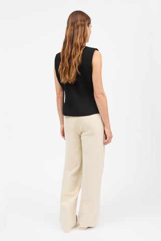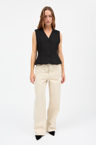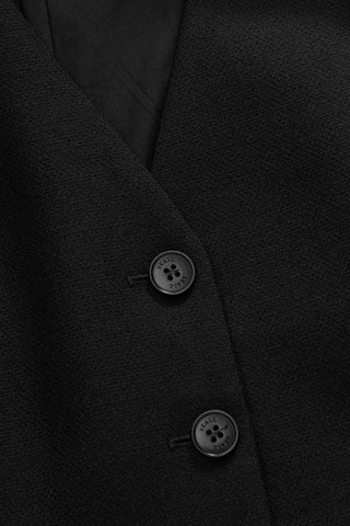 Ari Vest is a classic V-necked waistcoat that is fitted at the waist and finishes at hip length. Four large buttons fasten at the front between flattering seams.