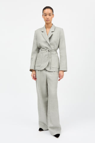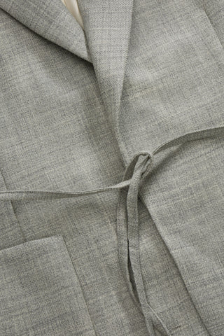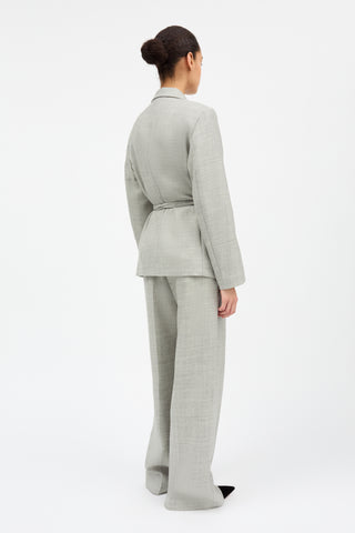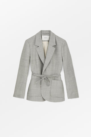 Bella Blazer is a classic menswear-inspired jacket in 100% wool but given a feminine edge with a thin self fabric tie belt that wraps twice around the body to define the waist. Constructed with no side seams, the blazer has a revere collar, two patch pockets and an inside pocket. It is fully lined.