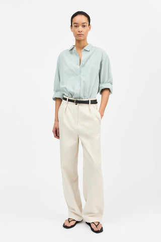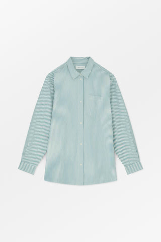 Oversized cotton shirt with classic collar, chest pocket and back pleat.