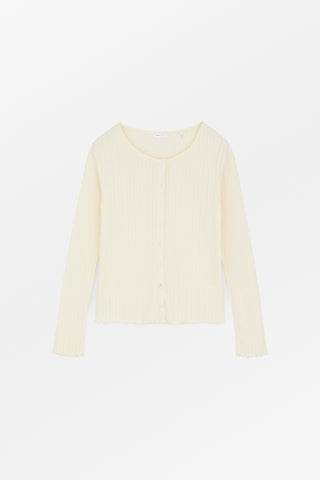 Soft cotton cardigan with pointelle texture, baby lock edges and buttons.