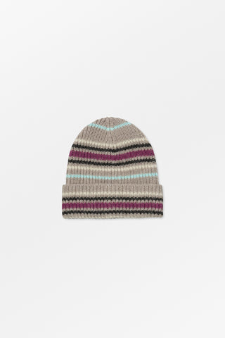 Laura Beanie is a warm and stylish knitted hat in a colorful stripe design. Made from 100% merino wool in a rib, the hem is turned back once.
