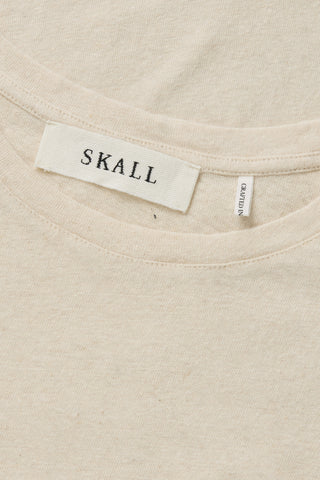 Soft tee with O-neck and a slightly loose fit in a cotton and linen blend.