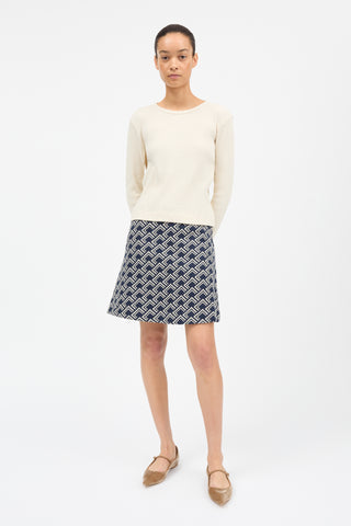 Paula Skirt is a short, A-line skirt that finishes at the mid-thigh and is made from 100% organic cotton. It has two slant pockets at the side and is closed by an invisible zip and hook and eye fastening.